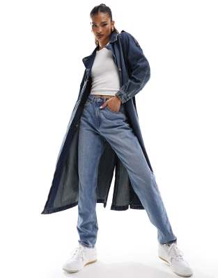 Pull&Bear x Lee - Trenchcoat i denim i mørkeblå vask