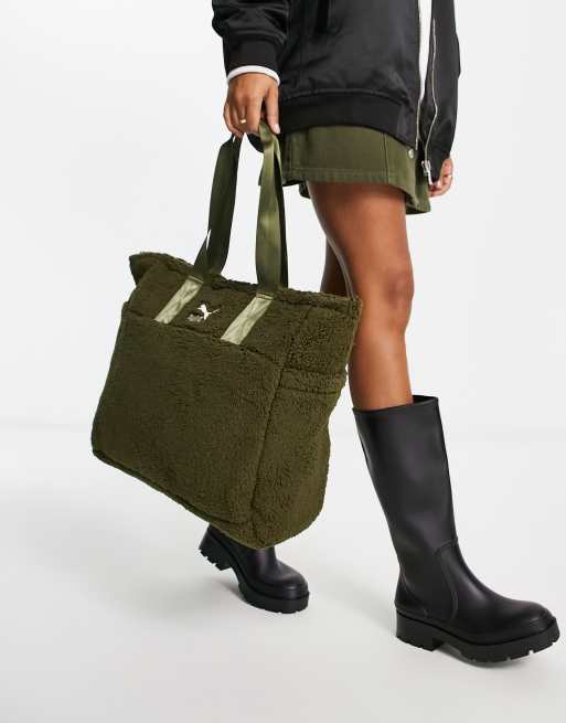 PUMA - Cosy Club - Dyb olivengrøn skuldertaske i imiteret lammeskind - Kun hos ASOS