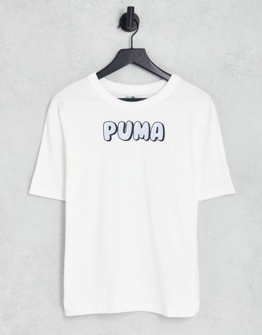 PUMA - Downtown - T-shirt med boblelogo i hvid og lyseblå