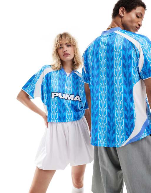 Puma - Retro-inspireret fodboldtrøje med print i blå og hvid