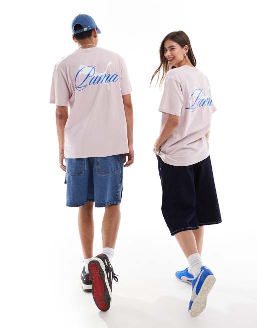 PUMA - Terrace - Lyserød og blå T-shirt med print på ryggen
