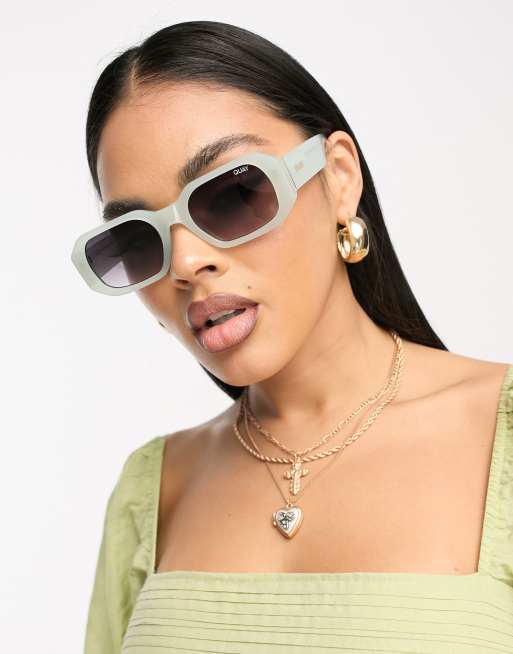 Quay - Hyped Up - Mintgrønne rektangulære solbriller