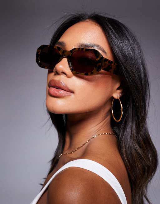 Quay - Hyped Up - Rektangulære solbriller med skildpaddemønster