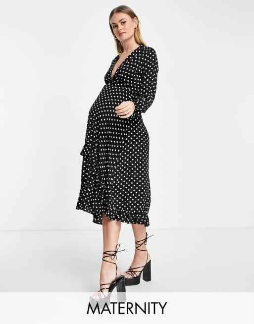 Queen Bee Maternity - Sort polkaprikket slå-om-midikjole