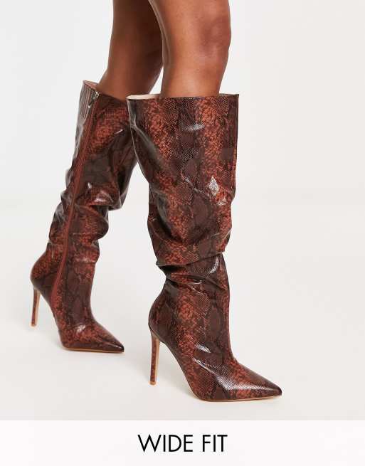 RAID Wide FIt - Brayden - Knæhøje stilet-støvler med gyldenbrunt slangeprint