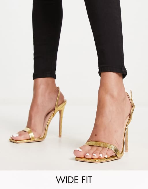 Raid Wide Fit - Meryn - Guldfarvede sandaler med hæl og krokodillemønster