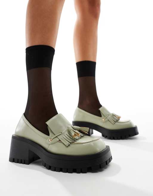 RAID - Tulip - Højhælede og salviegrønne loafers med kvast