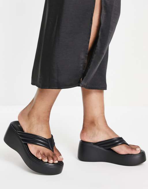 RAID - Weylyn - Sorte PU-sandaler med flatform-sål og tårem