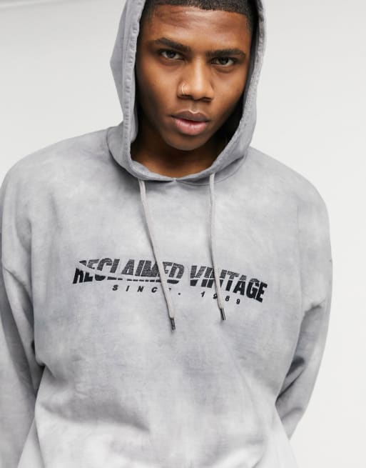 Reclaimed Vintage Inspired - Sæt med t-shirt, hættetrøje og joggingbukser i grå batik