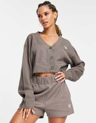 Reebok - Shorts i gråbrun vaffelstrik - Kun hos ASOS