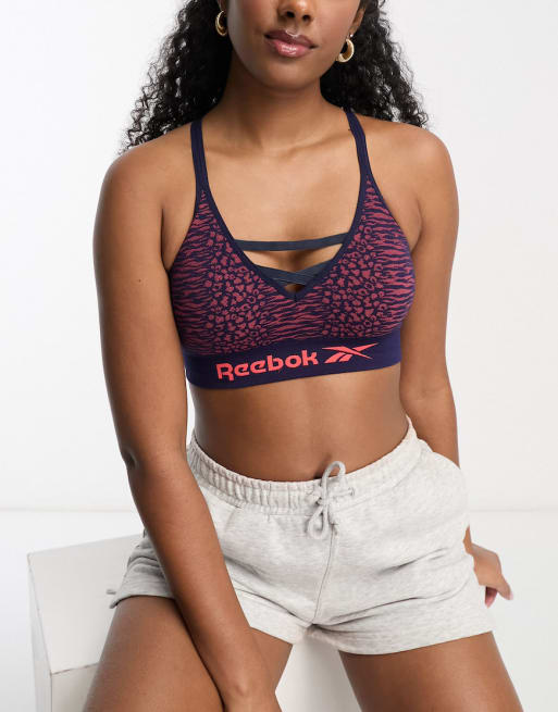 Reebok - Sømløs croptop med stropper og briefs i marineblåt og orange dyreprint
