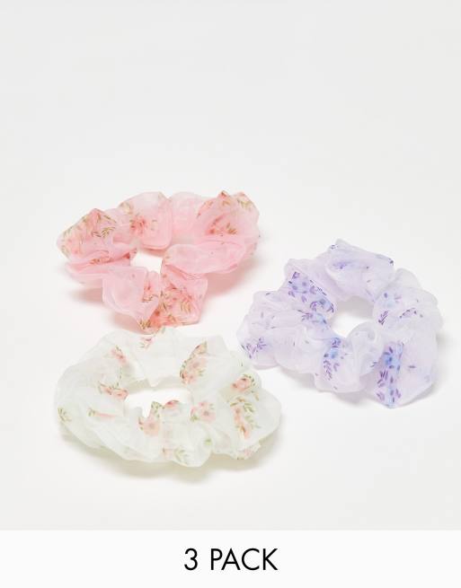 Revolution - Pakke med 3 scrunchies i organza med blomstermønster