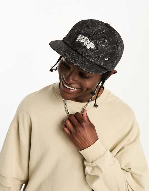 RIPNDIP - Sort kasket med fem paneler og gennemgående katteprint