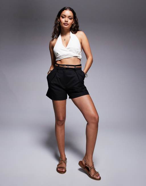 River Island Petite - Sorte skræddersyede shorts med bælte