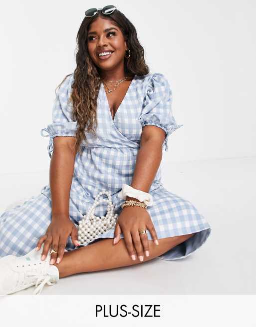 River Island Plus - Lyseblå midikjole med tekstureret gingham