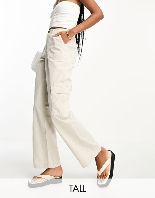 River Island Tall - Ecrufarvede cargobukser med vide ben