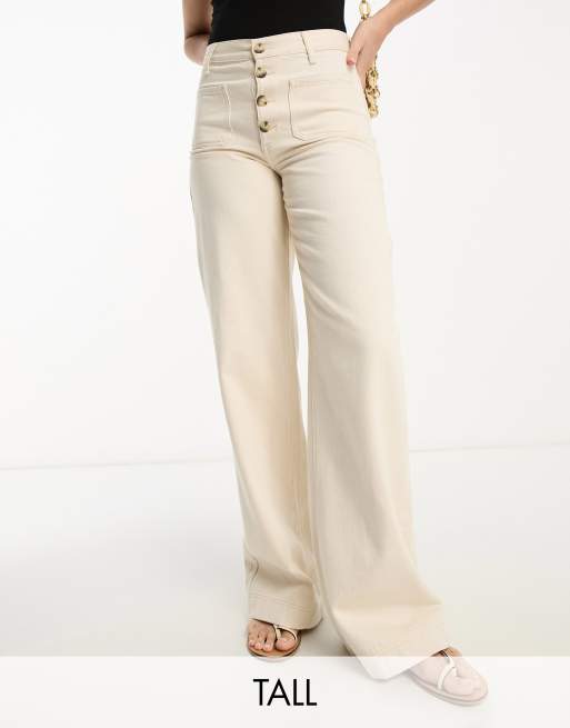 River Island Tall - Ecrufarvede jeans med vidde og gennemgående knapper