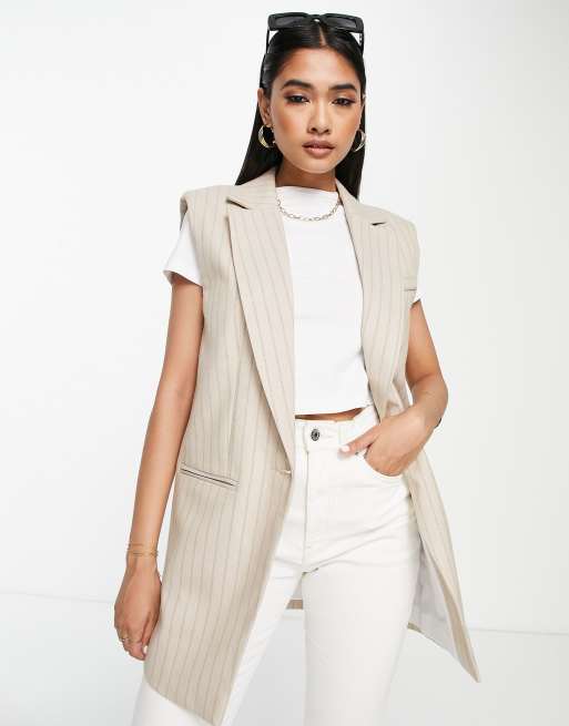 River Island - Beige blazer uden ærmer med nålestriber - Del af sæt