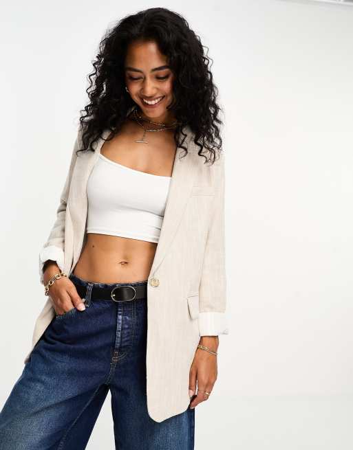 River Island - Beige dad-blazer i hør