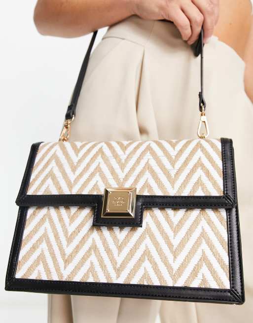 River Island - Beige skuldertaske med chevron-mønstret raffia