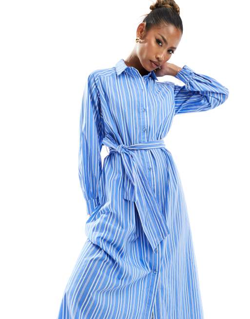 River Island - Blå maxi-skjortekjole med bælte