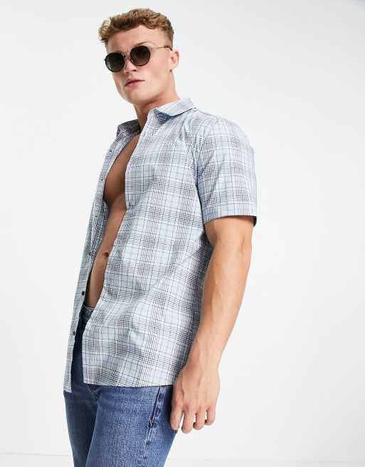 River Island - Blå tætsiddende kortærmet skjorte med tern