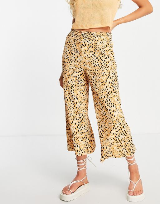 River Island - Brune culottes med rynket talje og dyreprint