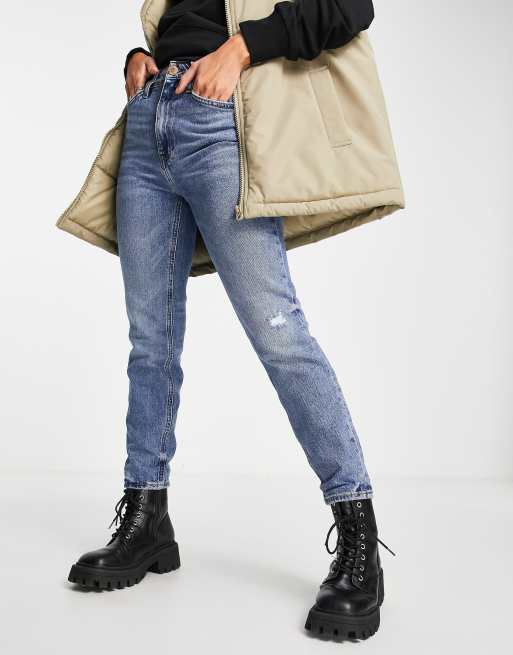 River Island - Carrie - Højtaljede blå mom-jeans
