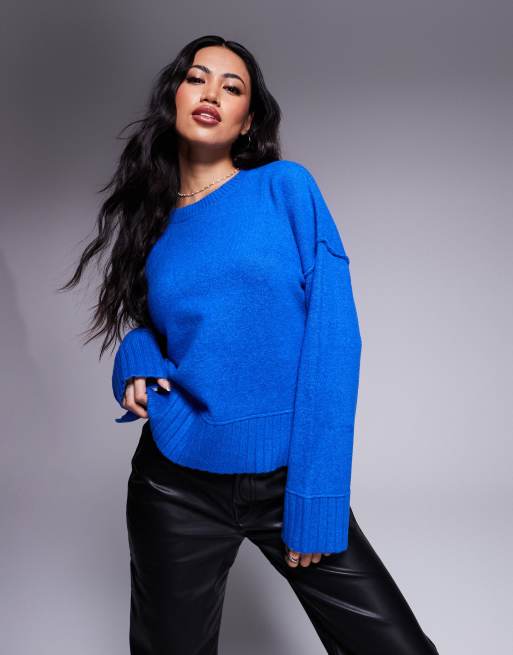 River Island - Cropped, chunky og koboltblå striktrøje