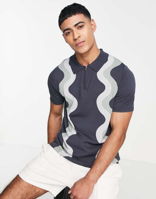 River Island - Grå kortærmet polo med hvirvelprint