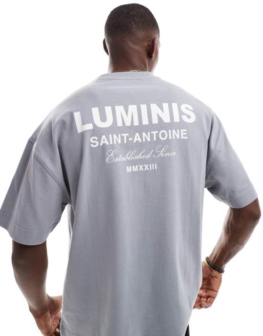 River Island - Grå oversized T-shirt med 'Luminis'-print
