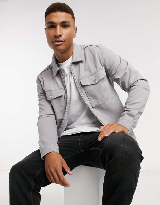 River Island - grå overskjorte med lange ærmer og gennemgående lynlås
