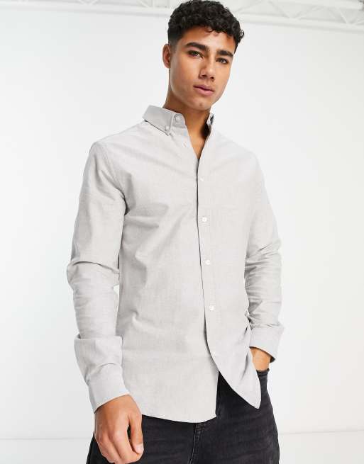 River Island - Grå Oxford-skjorte med stretch