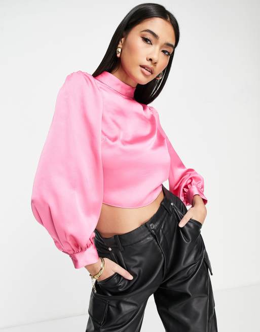 River Island - Højhalset bluse med bindebånd bagpå i pink