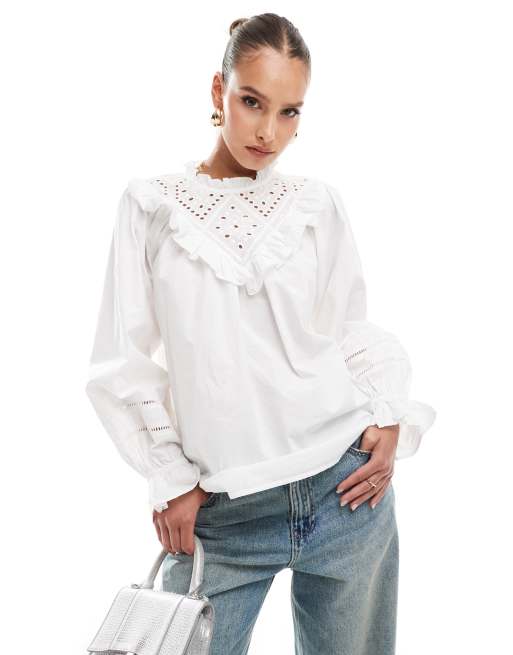 River Island - Hvid bluse med udskæringer