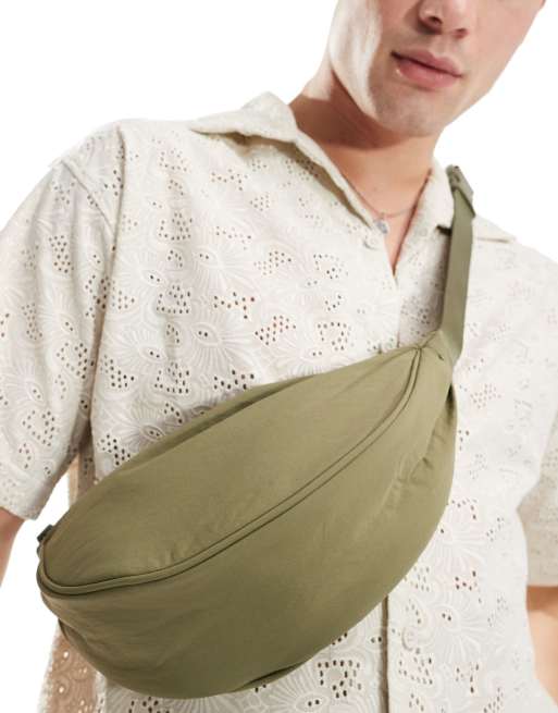River Island - Kakifarvet bæltetaske i krøllet nylon