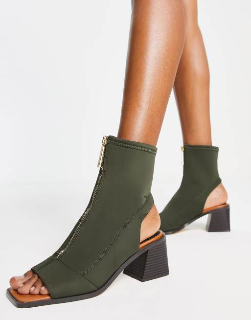 River Island - Kakigrønne sokkestøvler med åben tå og hæl