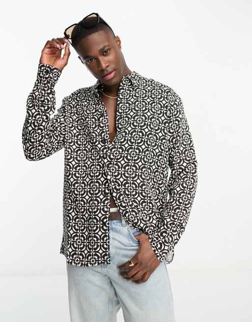 River Island - Langærmet festskjorte med geometrisk print i sort