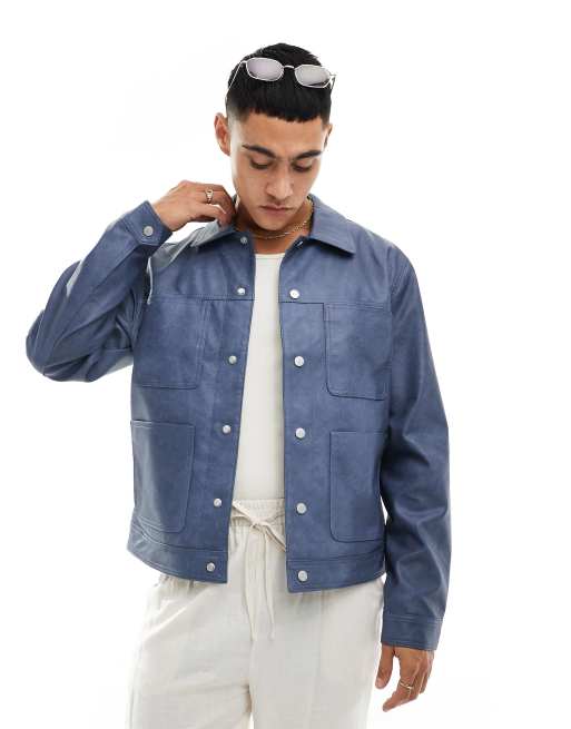 River Island - Lyseblå læderjakke i imiteret pels