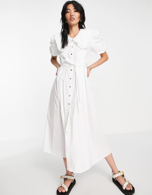 River Island - Oversized hvid maxi-kjole med krave i poplin