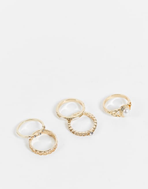 River Island - Pakke med 5 guldfarvede ringe med perler