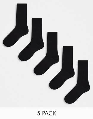River Island - Pakke med 5 par ribstrikkede ankelsokker i sort