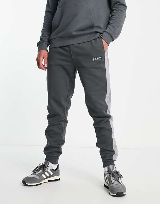 River Island - Paris - Smalle joggingbukser med farveblok i grå