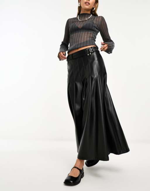 River Island - Plisseret sort midinederdel i imiteret læder med bælte
