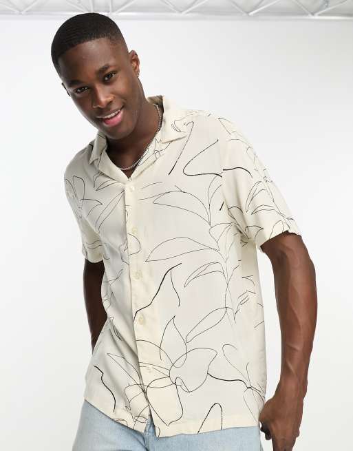 River Island - Råhvid skjorte med reverskrave og blomstermønster