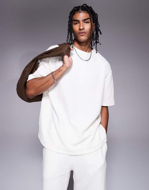River Island - Råhvid T-shirt med tekstur - Del af sæt