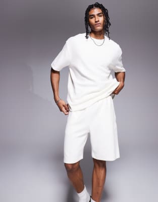 River Island - Råhvide shorts med tekstur - Del af sæt