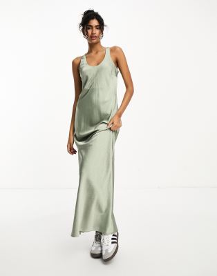 River Island - Salviegrøn slip-kjole med nitter i maxilængde
