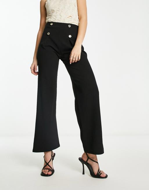 River Island - Skræddersyede bukser med vide ben og knapper i sort