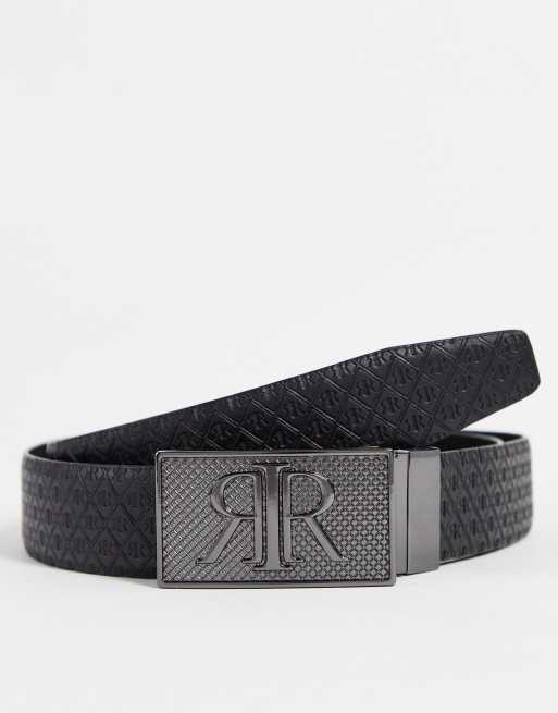 River Island - Sort bælte med belagt spænde med 'RIR'-monogram